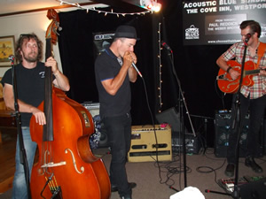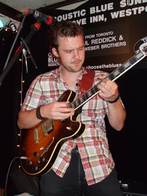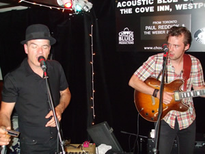 PAUL REDDICK (vocals & harmonica) & THE WEBER BROTHERS (Sam on guitar and Ryan on stand-up bass) provided another VERY special night of music at ACOUSTIC BLUE SUNDAY at THE COVE INN, Westport August 12th. These guys play like they've been together for years. Juno and W.C. Handy Award nominee Paul with two members of Ronnie Hawkins current band - either artist was worth the price of admission by themselves. Together - fabulous! Still a light turnout for this Summer Series unfortunately. Maybe people don't realize the calibre of the talent that is performing? They are truly some of Canada's best. Hope it improves for the remaining two this season or ACOUSTIC BLUE SUNDAYS will not be back next summer - which would really be too bad for Westport.But we can't afford to bring in this quality of talent without good turnouts- use it or lose it as they say. So spread the word Blues fans and book your tickets for the remaining shows now. |